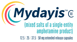 Mydayis is a mixed amphetamine salt, available in once-a-day doses of 12.5, 25.0, 37.5 and 30 mg capsules. The medication takes effect within 2 to 4 hours. The effects last up to 18 hours.